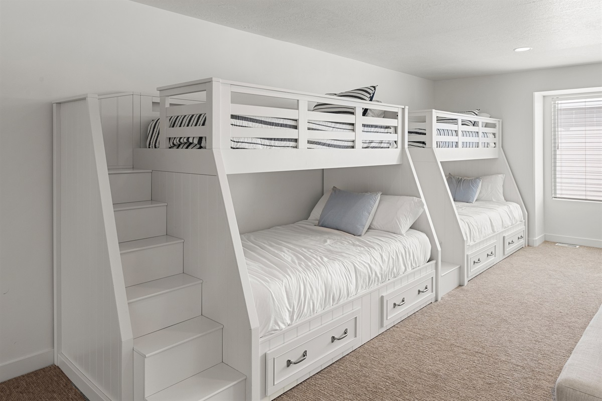 As you step inside, you'll be greeted by professionally designed space, complete with plush furnishings and modern decor. Sink into the comfortable sectional in the giant loft, where you'll find additional sleeping space with two bunk beds, perfect for accommodating larger groups or families.